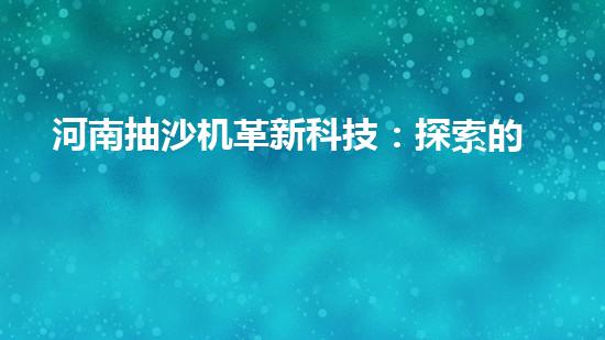 湛江抽沙機《創新科技:顛覆沙地開發的新型抽沙設備革命?》